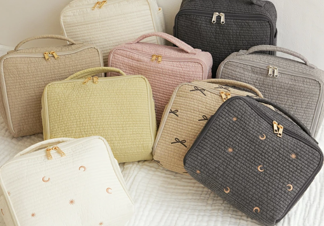 丈夫で扱いやすいキルティング生地のため、中身が偏りにくく整理しやすい点が支持されています。