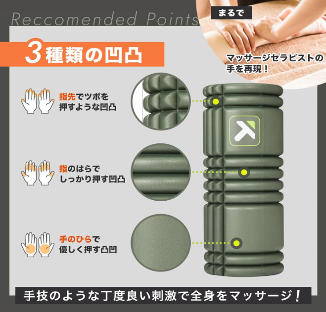 一般的なローラーでは得られない、しっかりした刺激の秘密を解説します。